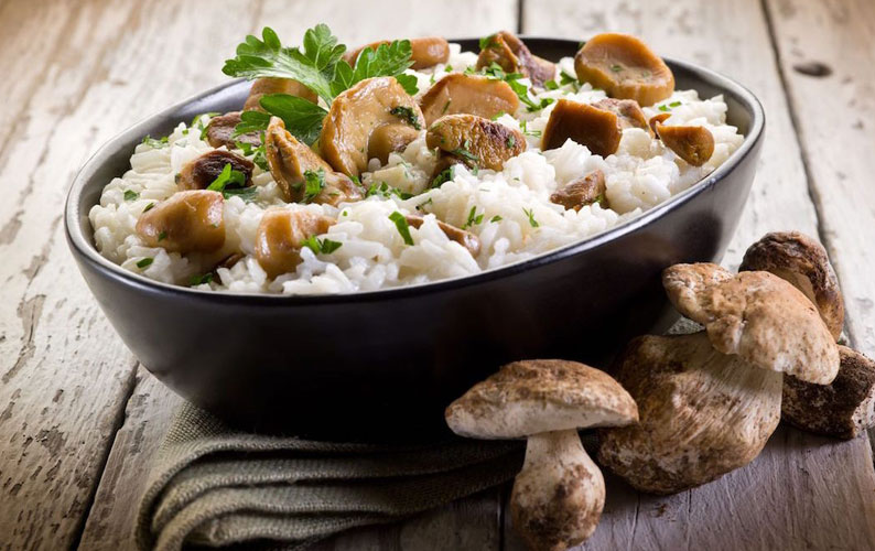 Orez cu dovleac, ciuperci și gorgonzola